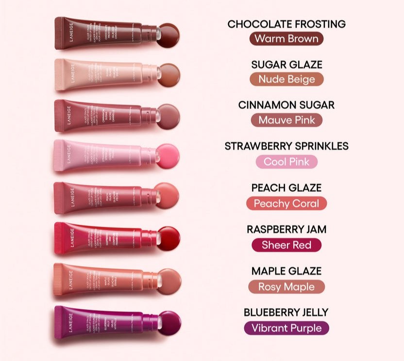 While Laneige doesn’t have a traditional sticky “lip gloss,” their Lip Glowy Balm and Glaze Craze Tinted Lip Serum function as glosses with added hydration benefits.